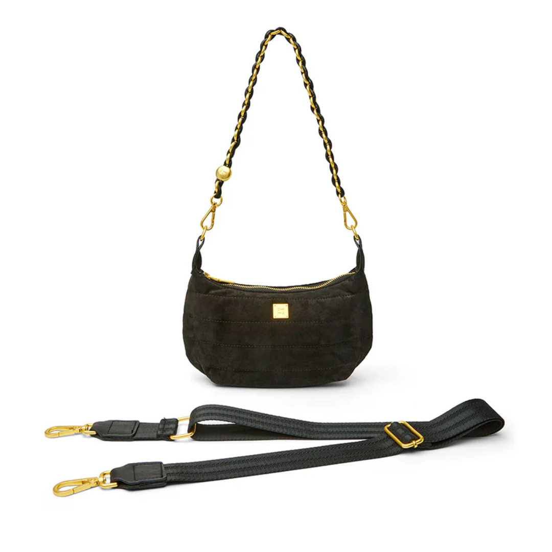 Our signature quilting elevates to the next level in plush luxe suede. Wear it your way with the detachable woven luxe and chain strap…