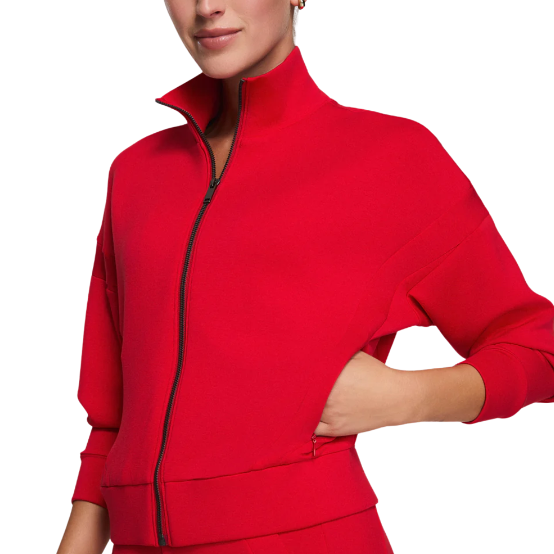 Our SPANX® AirEssentials Track Jacket is made with our ultra-drapey spacer fabric that's breathable, light-as-air, and oh-so soft. This front-zip design features classic track jacket details, like convenient front pockets, a full-length zipper, and classic mockneck for an easy, sporty look. Designed with 4-way stretch, it's the perfect easy layer to have on hand. Whether you're traveling, running errands, or lounging at home, this throw-on-and-go jacket will truly take you anywhere and everywhere.