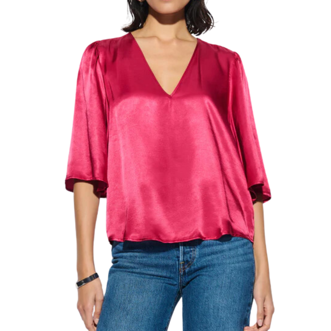 The easiest going out top you'll ever own. V-neckline, forward shoulders and fluttery, flared sleeves. P.S. You probably need every color.