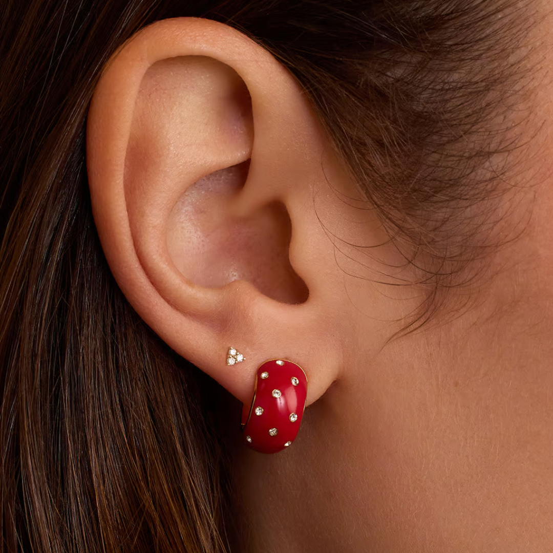 Wear these colorful, statement huggie hoops alone for a chic solo statement or style them with your favorite earrings to add a playful, holiday-ready twist to your ear stack.