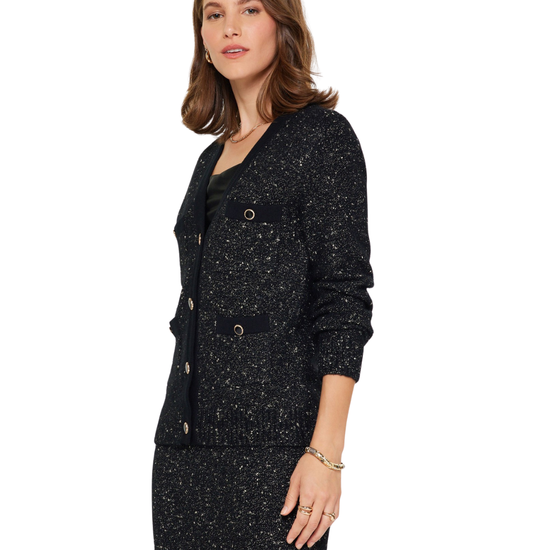 An easy Knit Pencil Skirt to pair with the matching Knit Sparkle Cardigan! This sweater material has the slightest touch of silver woven throughout it.