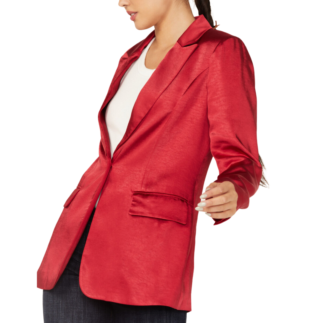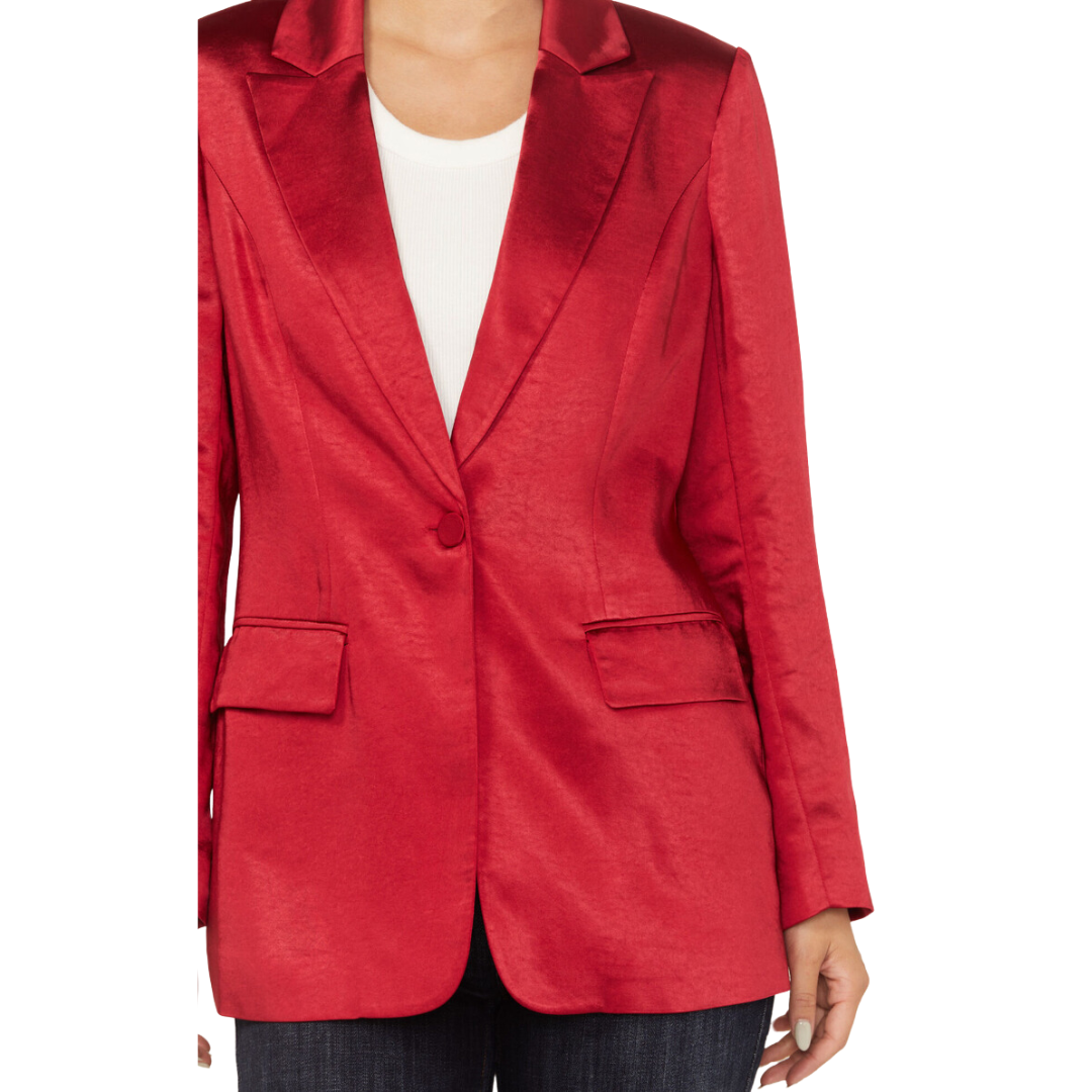 Be the envy of the office with our One Button Satin Blazer in Red! This blazer will elevate any outfit with its sleek design and satin fabric. Perfect for adding a touch of sophistication to your wardrobe. One button for easy wear and endless style possibilities!