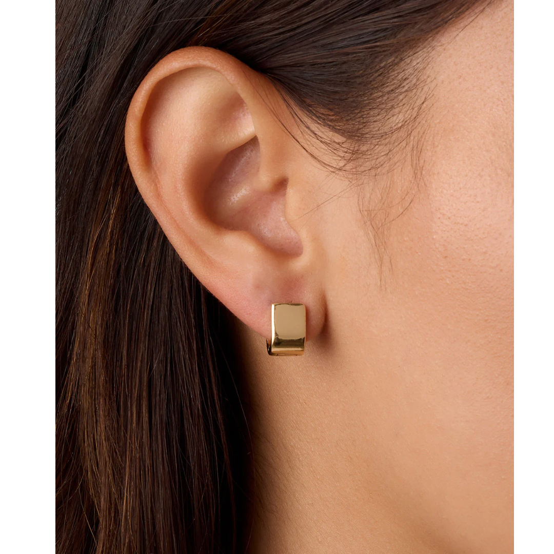 Designed to hug your earlobe, these 18k gold plated huggie earrings are your go-to for effortless stacking. Style your huggies with hoops and studs, or let them shine solo for a minimalist moment. Lightweight and versatile, they transition seamlessly from your morning coffee to a night out.