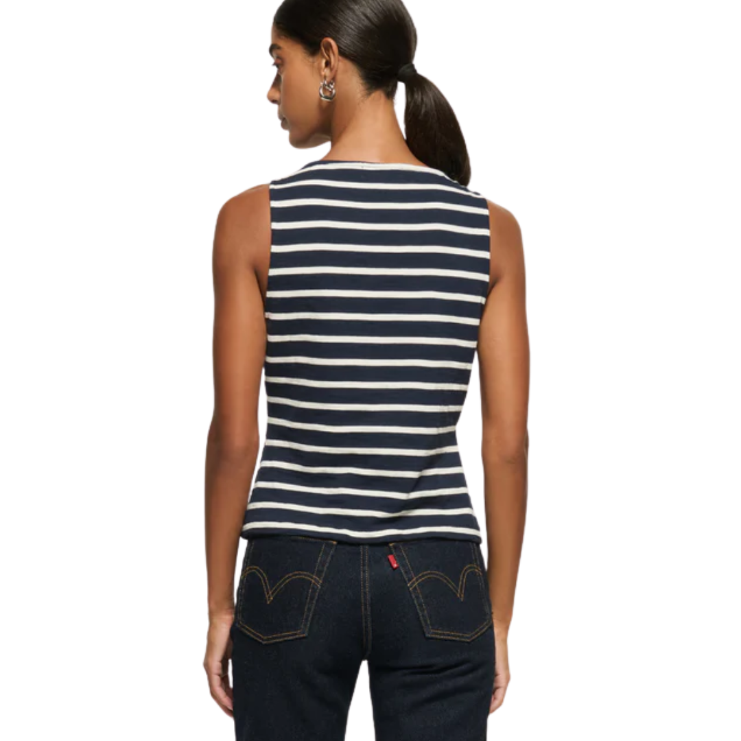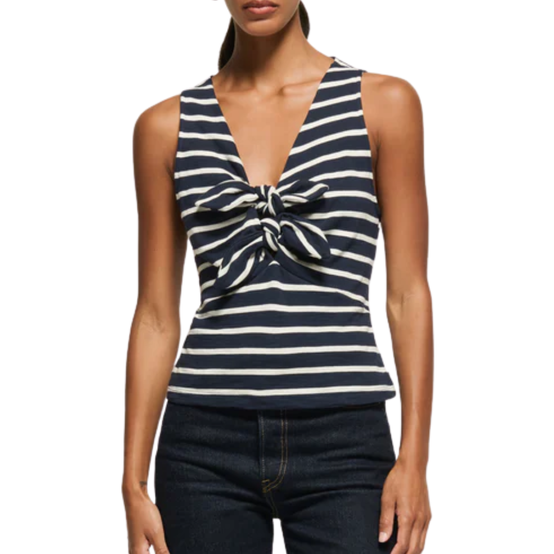 When your going-out top needs some refinement, the Terri Tie Tank has you covered. Made in easy cotton jersey, this form-fitting top features front bow-tie detailing, a flattering v-neckline, and side slit openings for utmost comfort. This one comes in navy and white Playa Stripe.