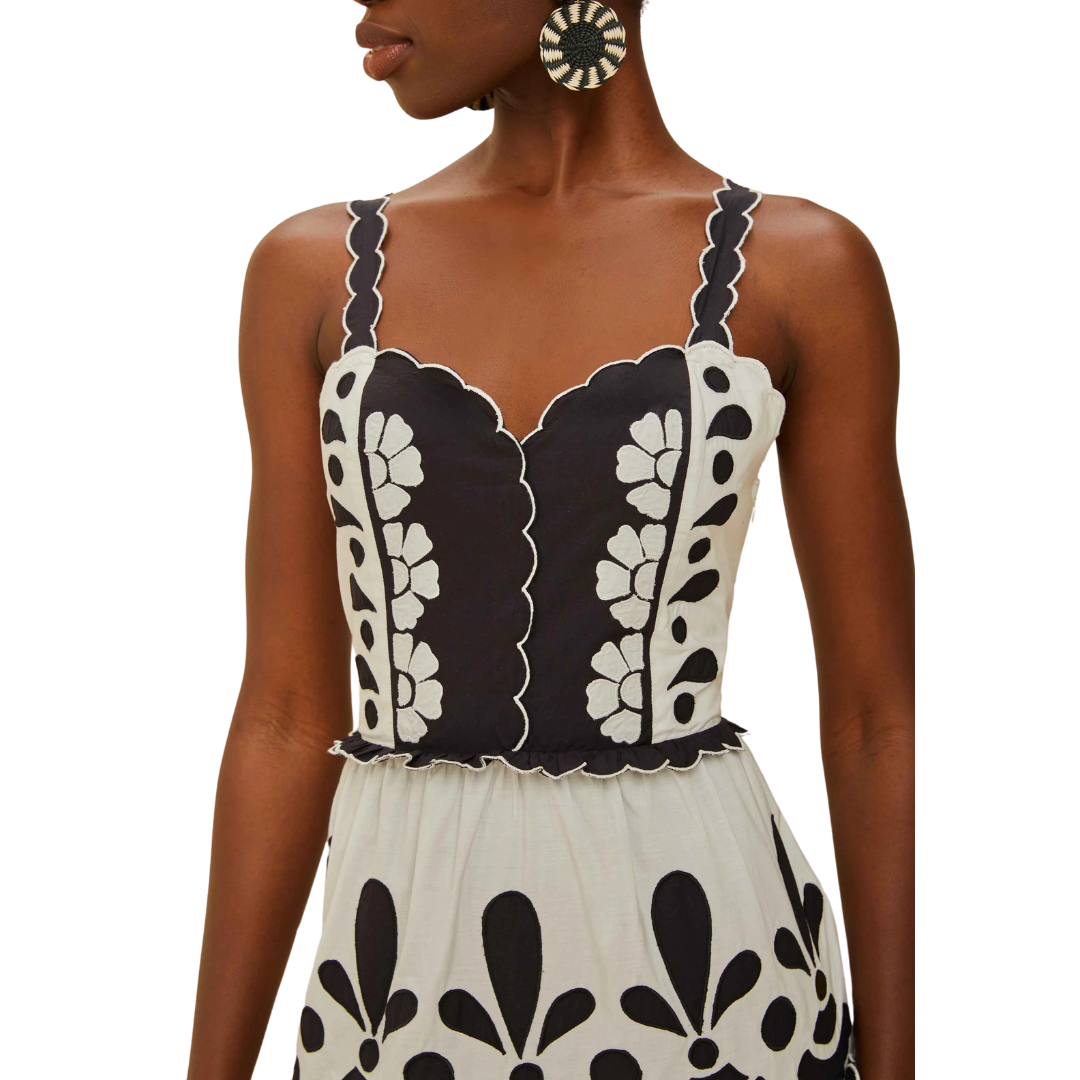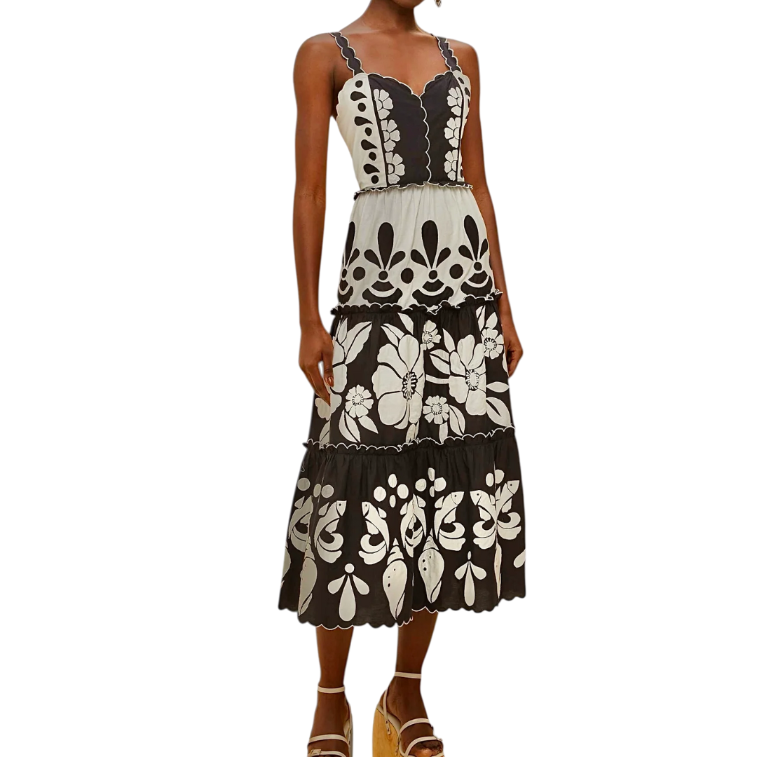 Embrace effortless elegance with the Summer Cutwork Midi Dress by Farm Rio. Featuring a striking black and white palette, this dress showcases delicate cutwork and scalloped edges that add a touch of refined charm. The tiered skirt creates graceful movement, perfect for warm days and evening outings alike. Lightweight and stylish, it’s designed to keep you comfortable while turning heads wherever you go. Elevate your summer wardrobe with this versatile, standout piece.