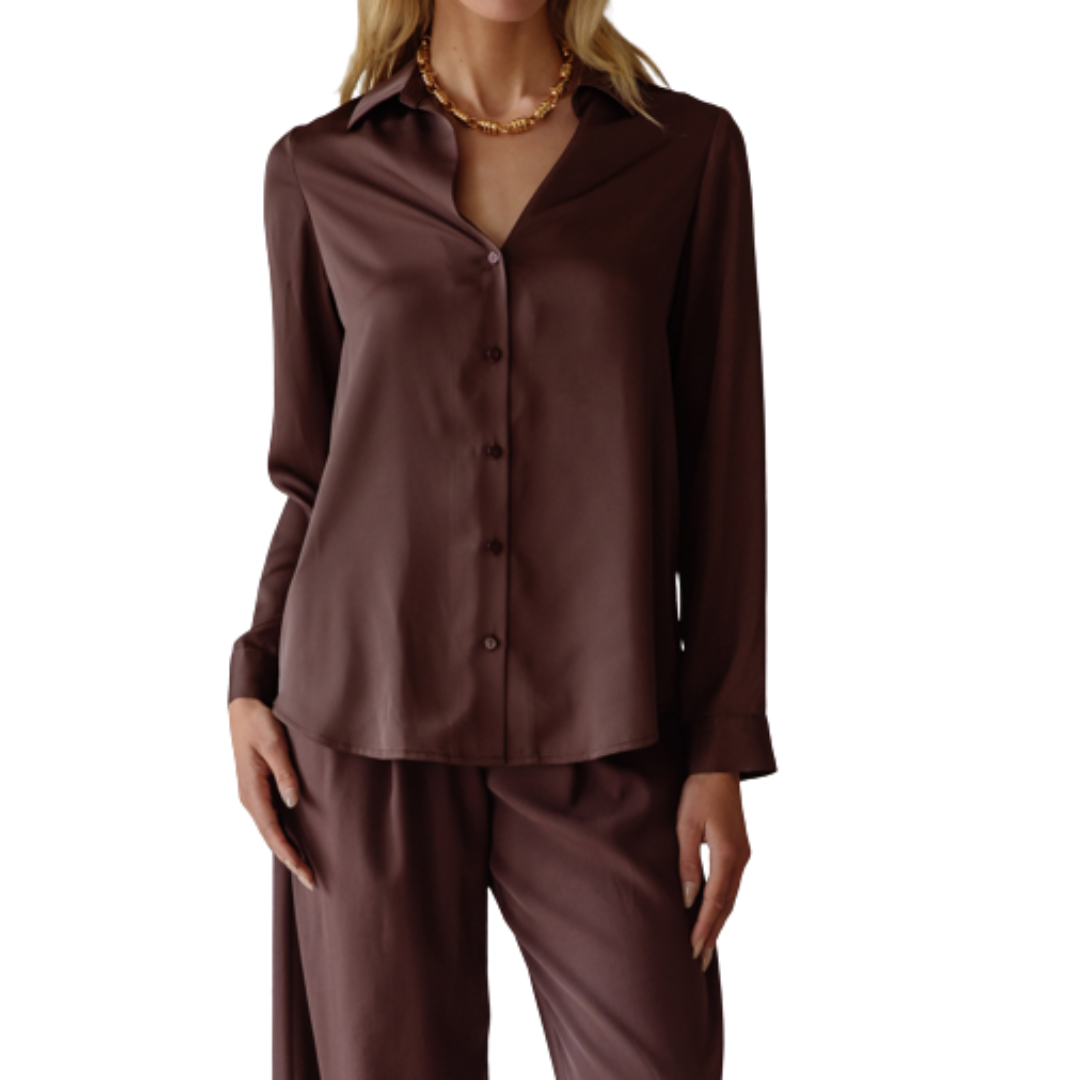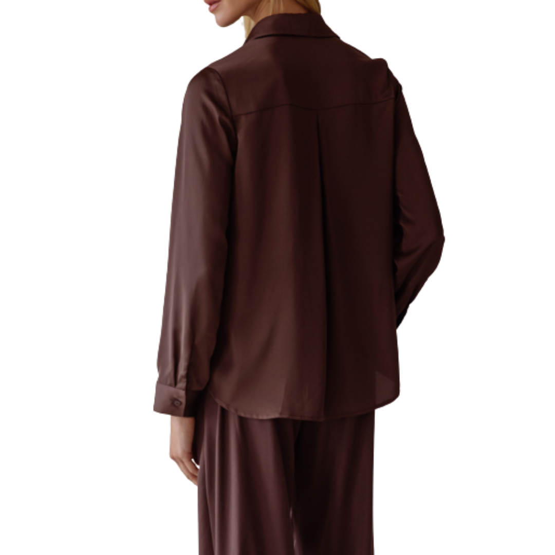 LONG SLEEVE SATIN BLOUSE ESPRESSO