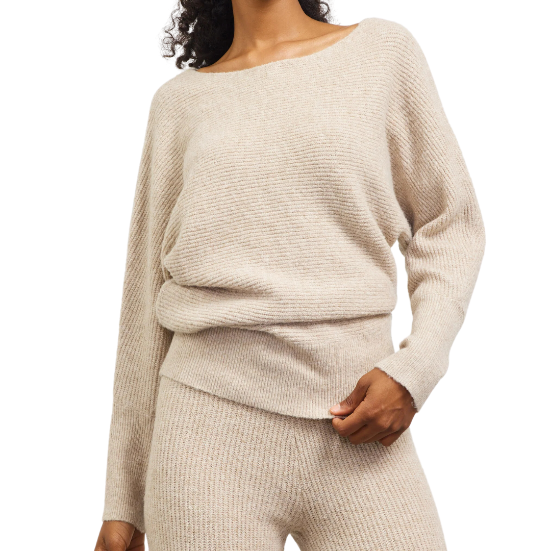 LONG SLEEVE BOATNECK RIBBED SWEATER OATMEAL