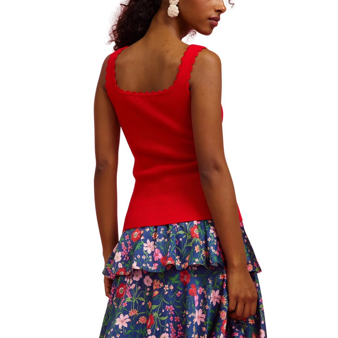SCALLOPED RIB TANK RED