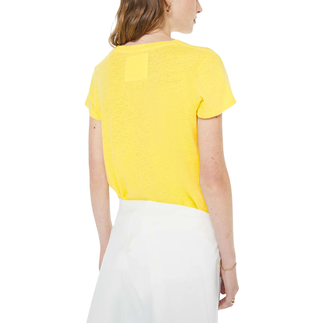 Pick me. A soft crewneck with a slim fit for a vintage look and feel. Made from a SUPERIOR blend of cotton and linen, the tee is designed in yellow with a red apple graphic and MOTHER's name in blue on the front.