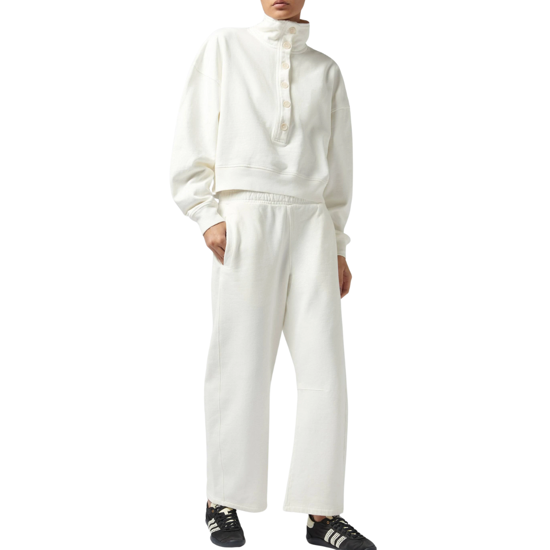 The ‘Mirelle’ is a modern update to the classic sweatshirt, crafted from soft brushed fleece with a plush, cozy feel. Designed with a high funnel neckline and button closure, the relaxed silhouette offers warmth and polish in equal measure. Ideal for off-duty layering or elevated lounging.