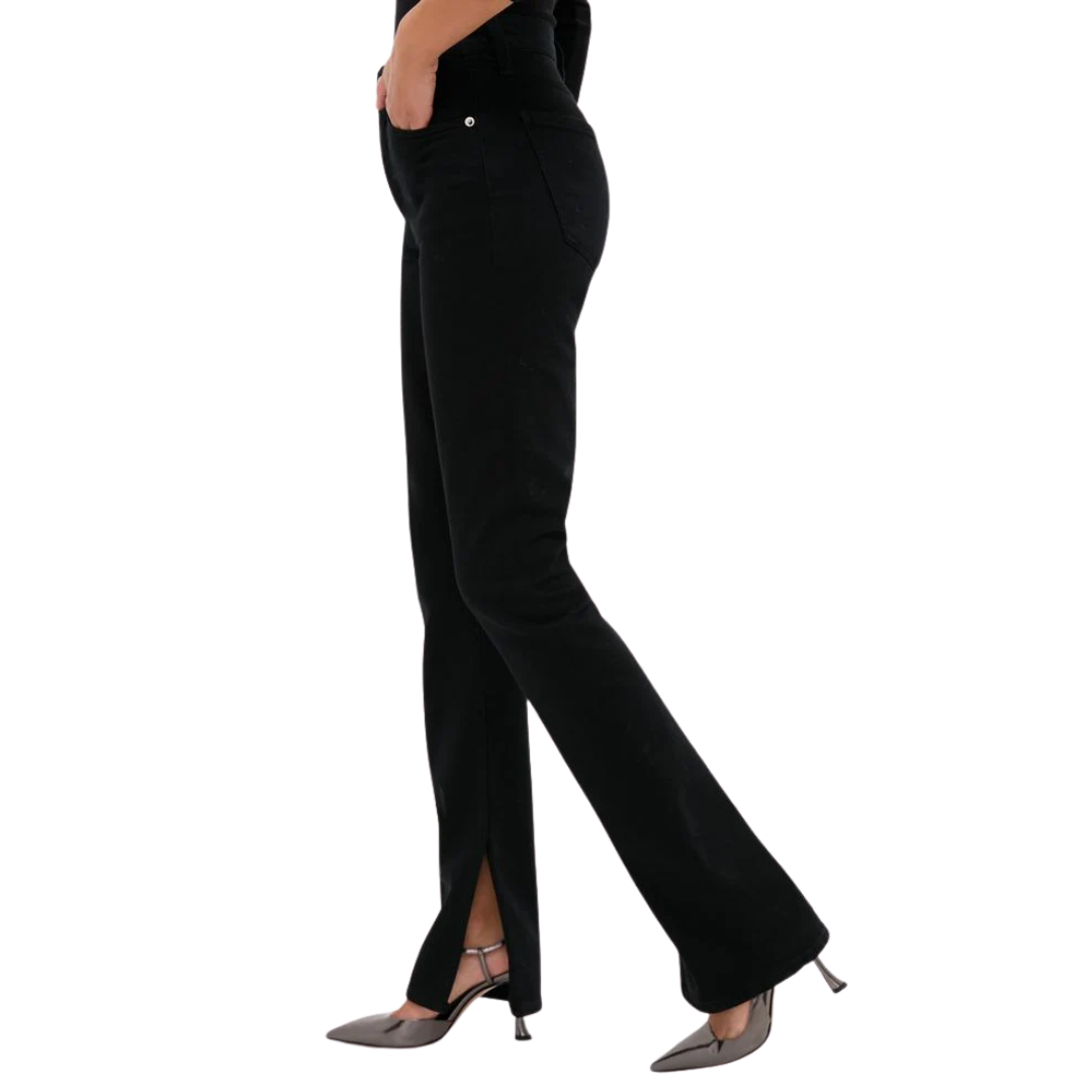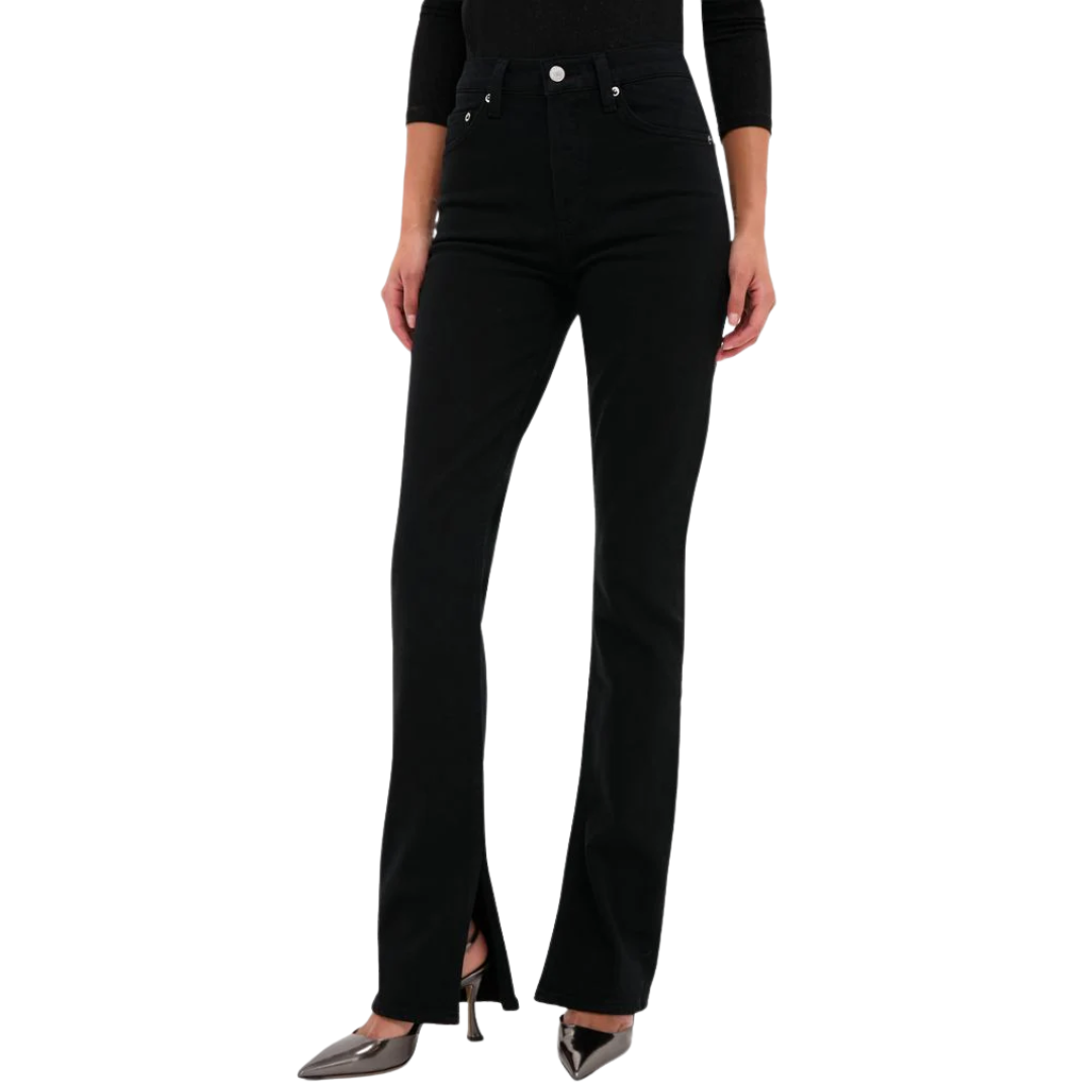 The Ingram Split Skinny is a high-rise, full-length pant in clean, saturated black denim. Crafted from comfort-stretch, lightweight regenerative cotton, it has a super-soft hand that holds its shape while offering all-day wearability. True to size, the sleek silhouette is perfect for pairing with fitted tops or oversized knits for a modern, versatile look.