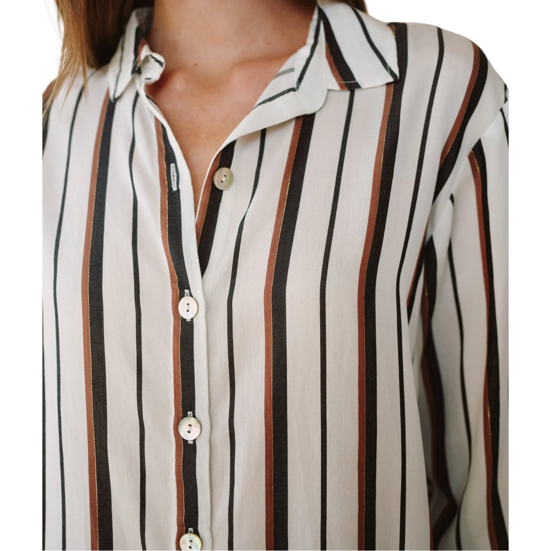 BOYFRIEND STRIPE BUTTON DOWN AUTUMN LUREX STRIPE