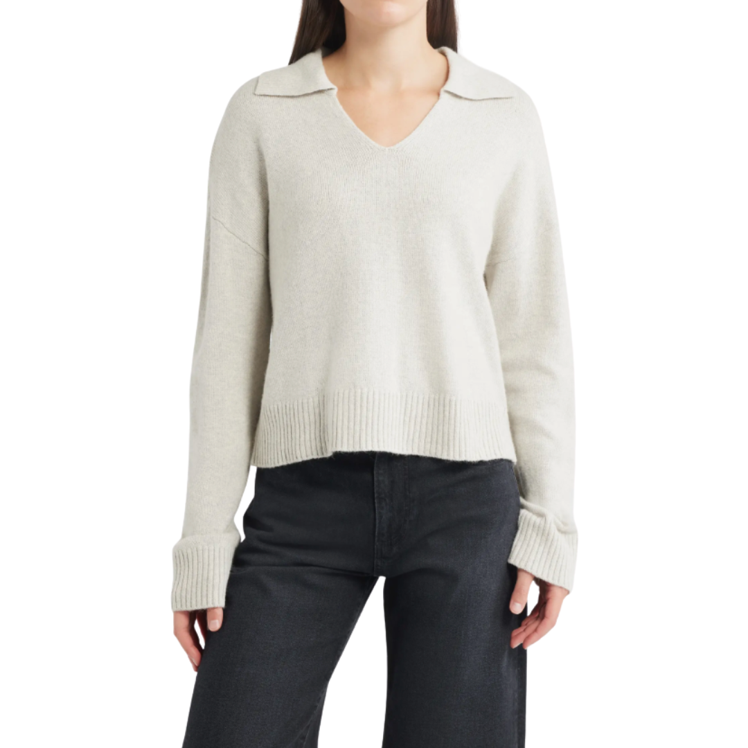 PULLOVER SWEATER W/ COLLAR HEATHERY MOON