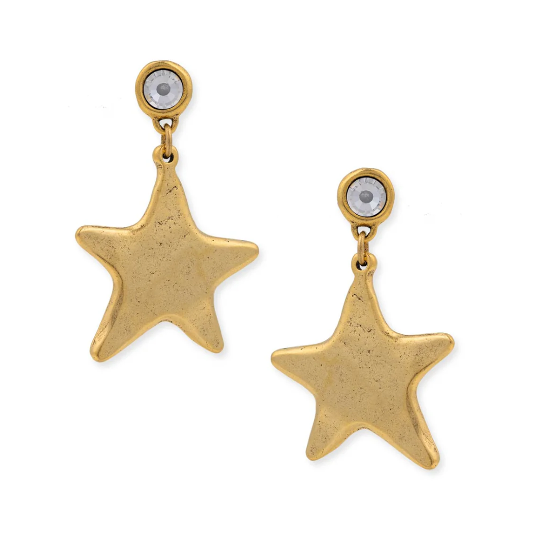 Add some celestial sparkle to your outfit with our Star Shine Earrings! The midsize star charms and cz post studs make these earrings a beautiful and fun statement piece. designed to match our best selling star shine and luminary necklace