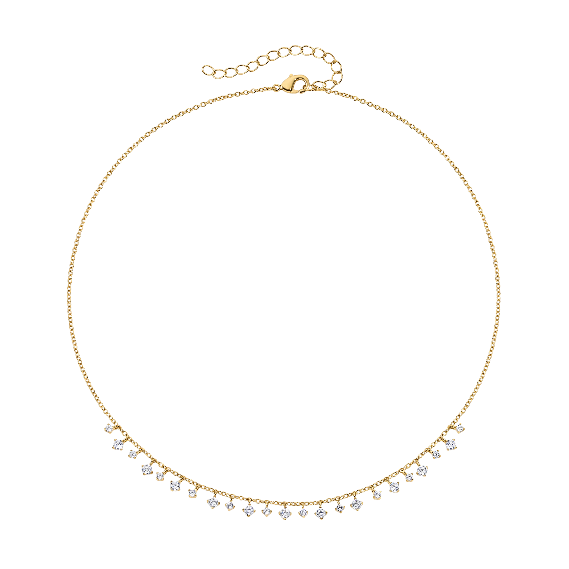 Finished with a row of dangling crystals that dance along the neckline, the Jolie Necklace lends a sophisticated, sparkling touch to any party outfit.