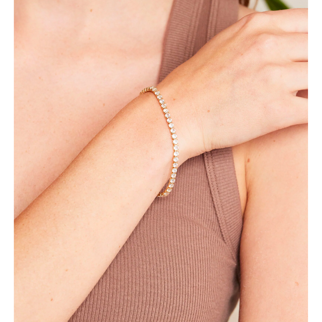 Effortlessly accessorize for any occasion with the viral Anna Bracelet, a classic tennis bracelet made to leave a lasting impression. 14kt Gold Filled Tennis Bracelet