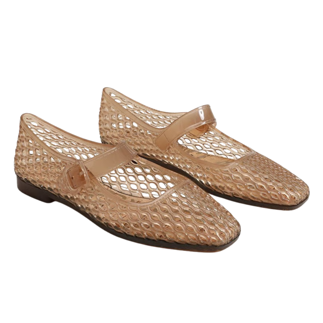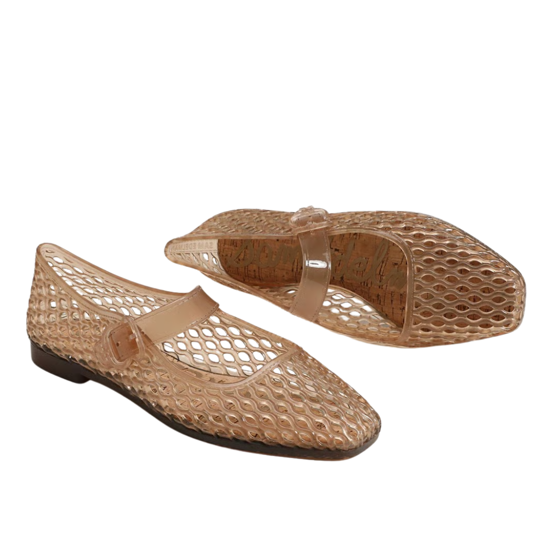 Playful and retro, the Michaela Jelly flat is a modern take on the classic Jelly sandal. With its translucent design and adjustable buckle strap, this shoe is perfect for adding a unique touch to any look. We reccomend sizing down if you are a half size.