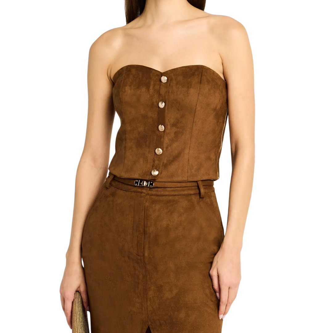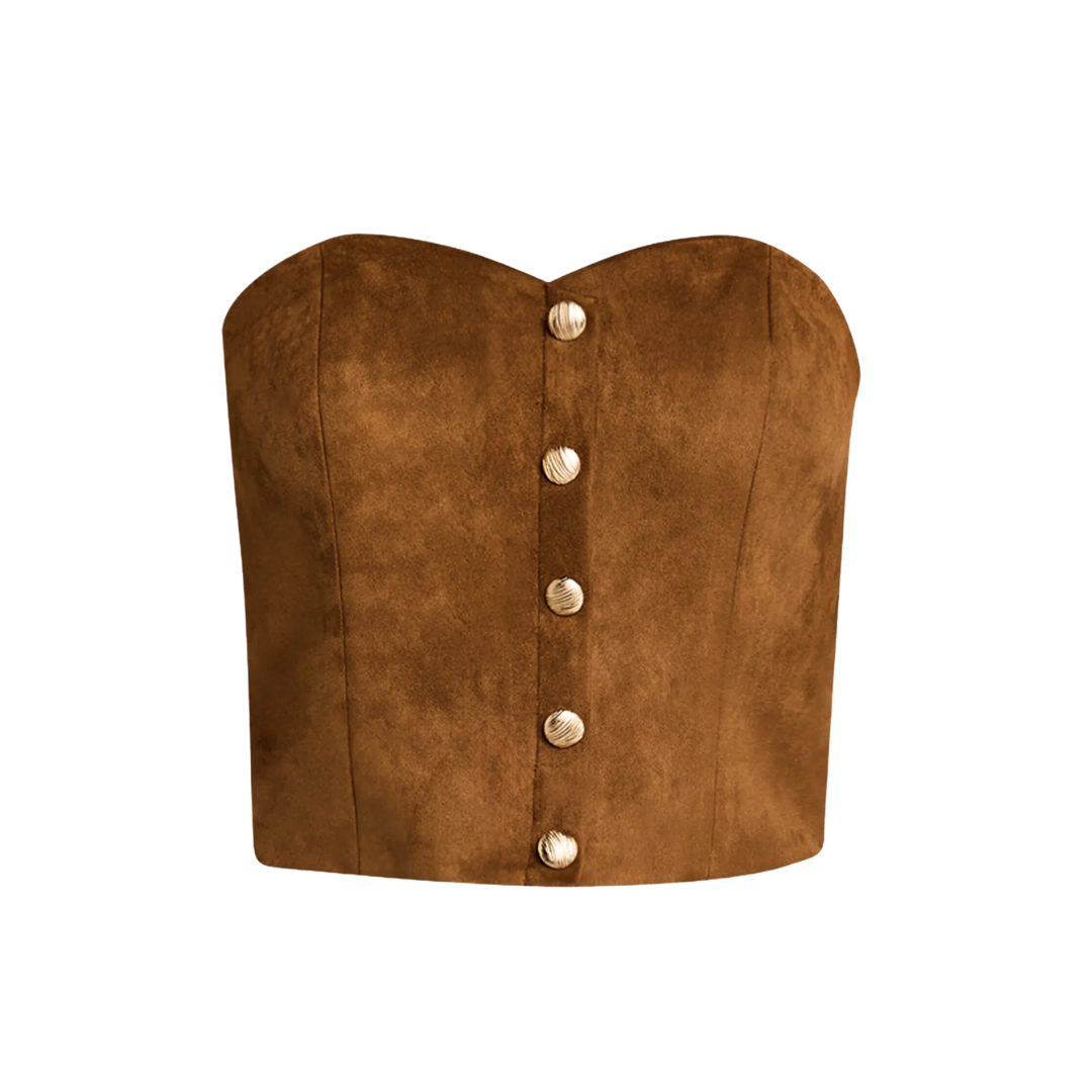 - Generation Love "Brea" vegan suede bustier top finished with gold-tone buttons