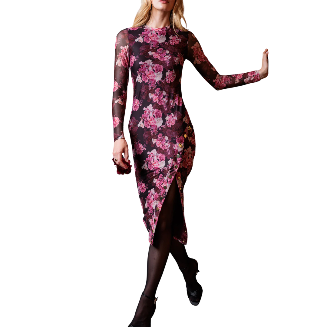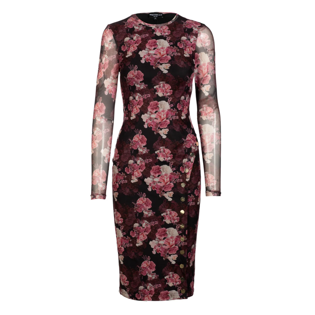 MONIQUE FLORAL MESH DRESS BURGUNDY
