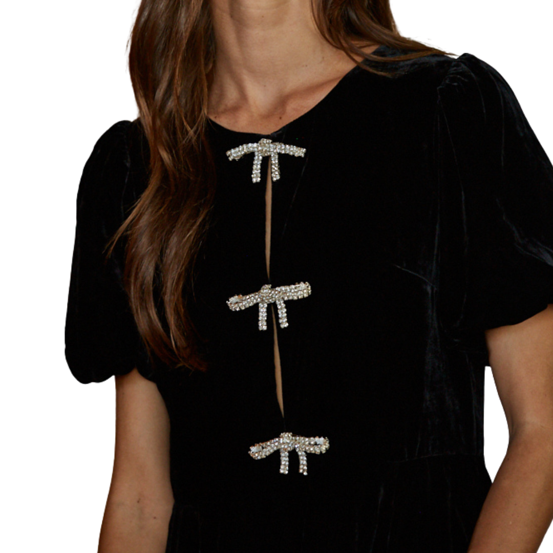 VELVET SPARKLE BOW MINI DRESS