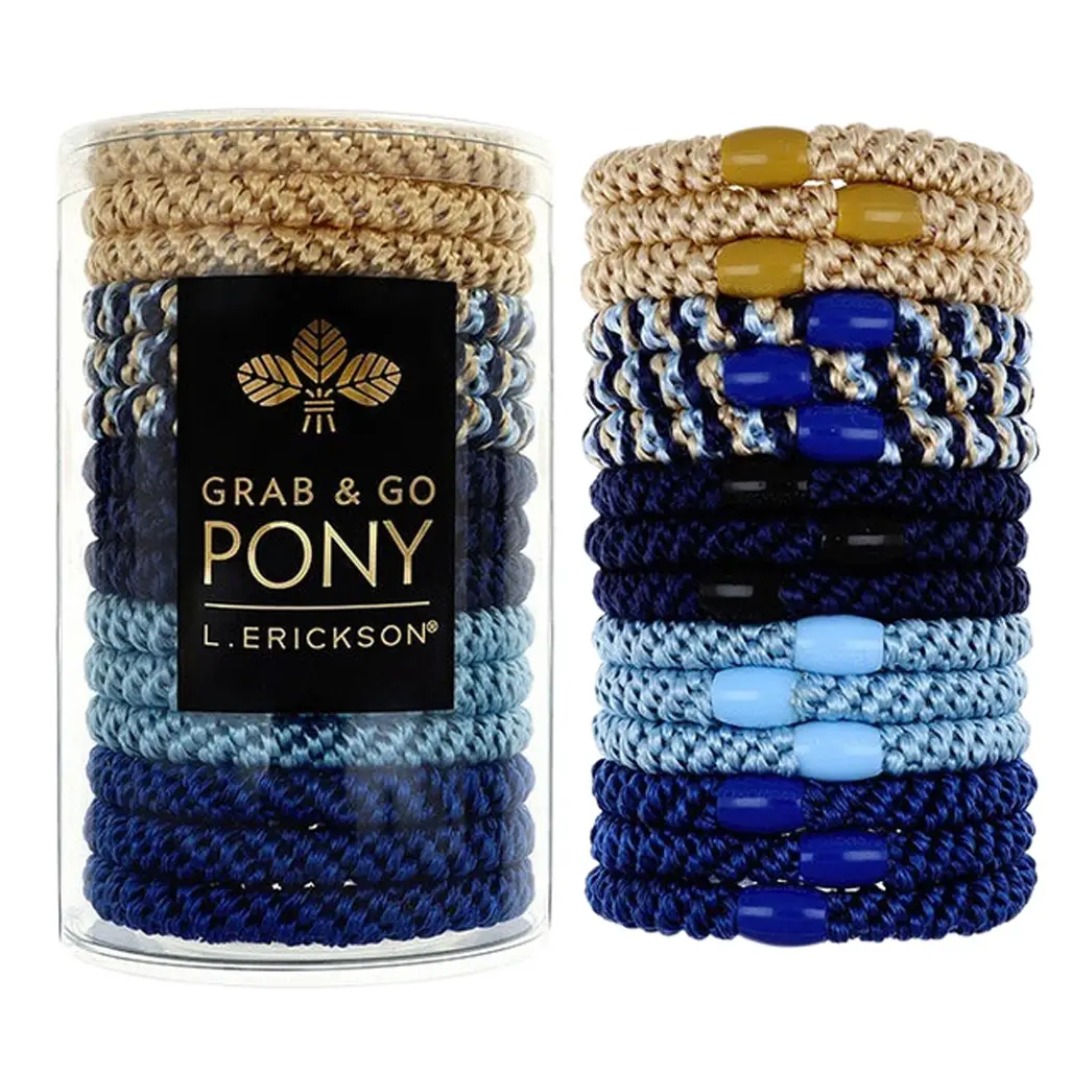 L. Erickson Grab & Go Ponytail Holders are must-have hair ties. Constructed of thick elastic accented with an ornamental oval bead, these hair bands are no crease and damage free. These hair ties are perfect for a simple ponytail and offer exceptional hold. Keep a few in your purse, desk, and car for a quick and comfortable on-the-go styling solution.