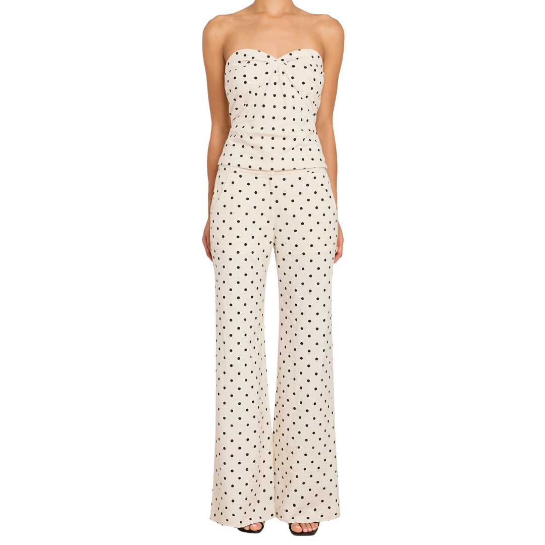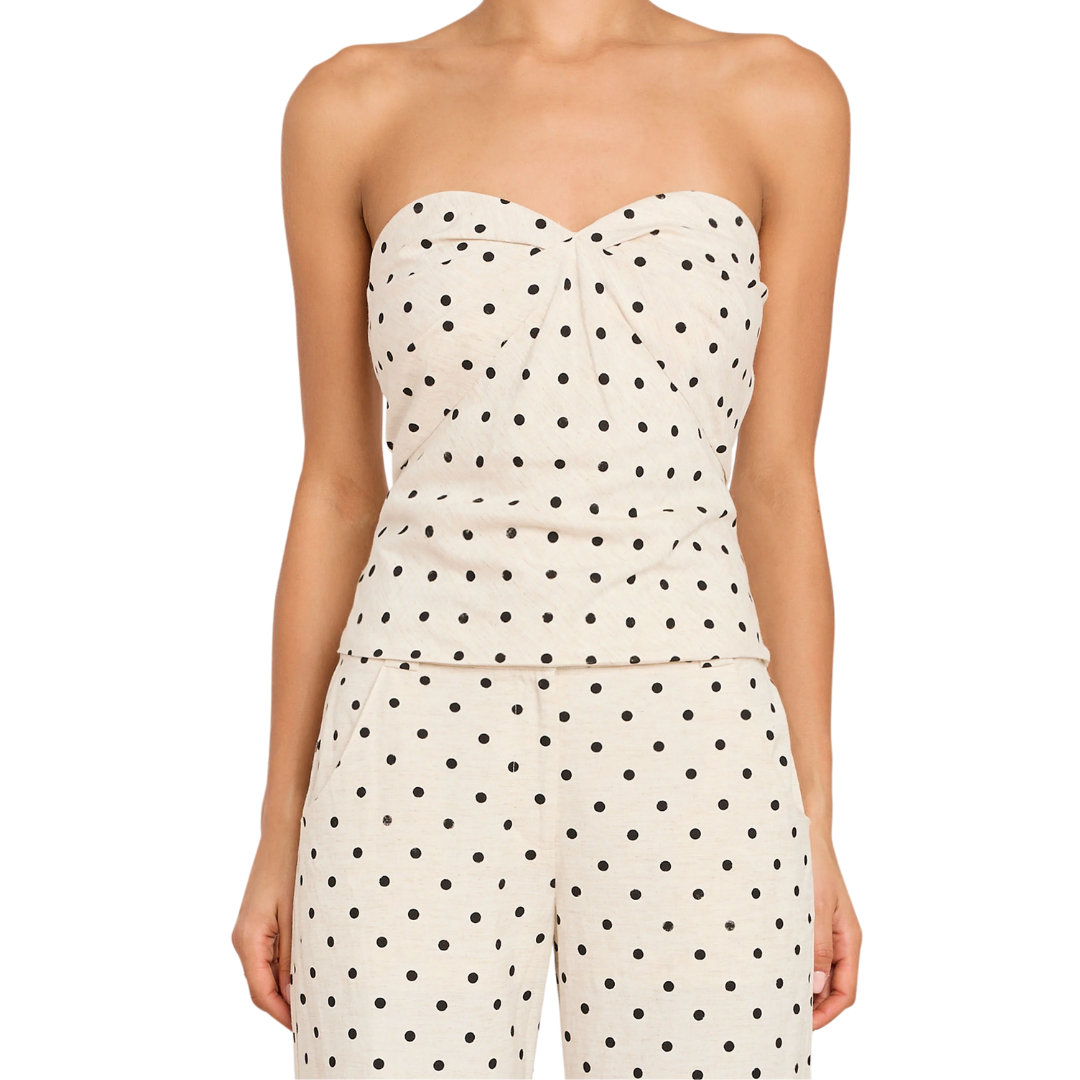 Feel your best in the Soho Top. With a sweetheart neckline and strapless cut, this top is all about flirty sophistication. The polka dot print adds extra charm—style it with the Saddler Pants for a coordinated look.
