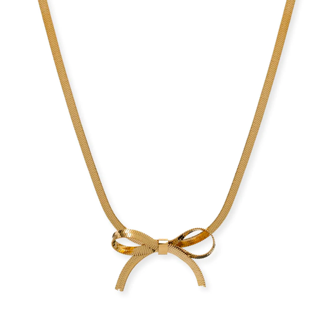 This elegant Bow Necklace is perfect for those who love to add a touch of femininity to their style. Its delicate bow design and water-resistant feature make it a versatile accessory that can be worn daily. Complete the look with the matching earrings for a chic and coordinated outfit.