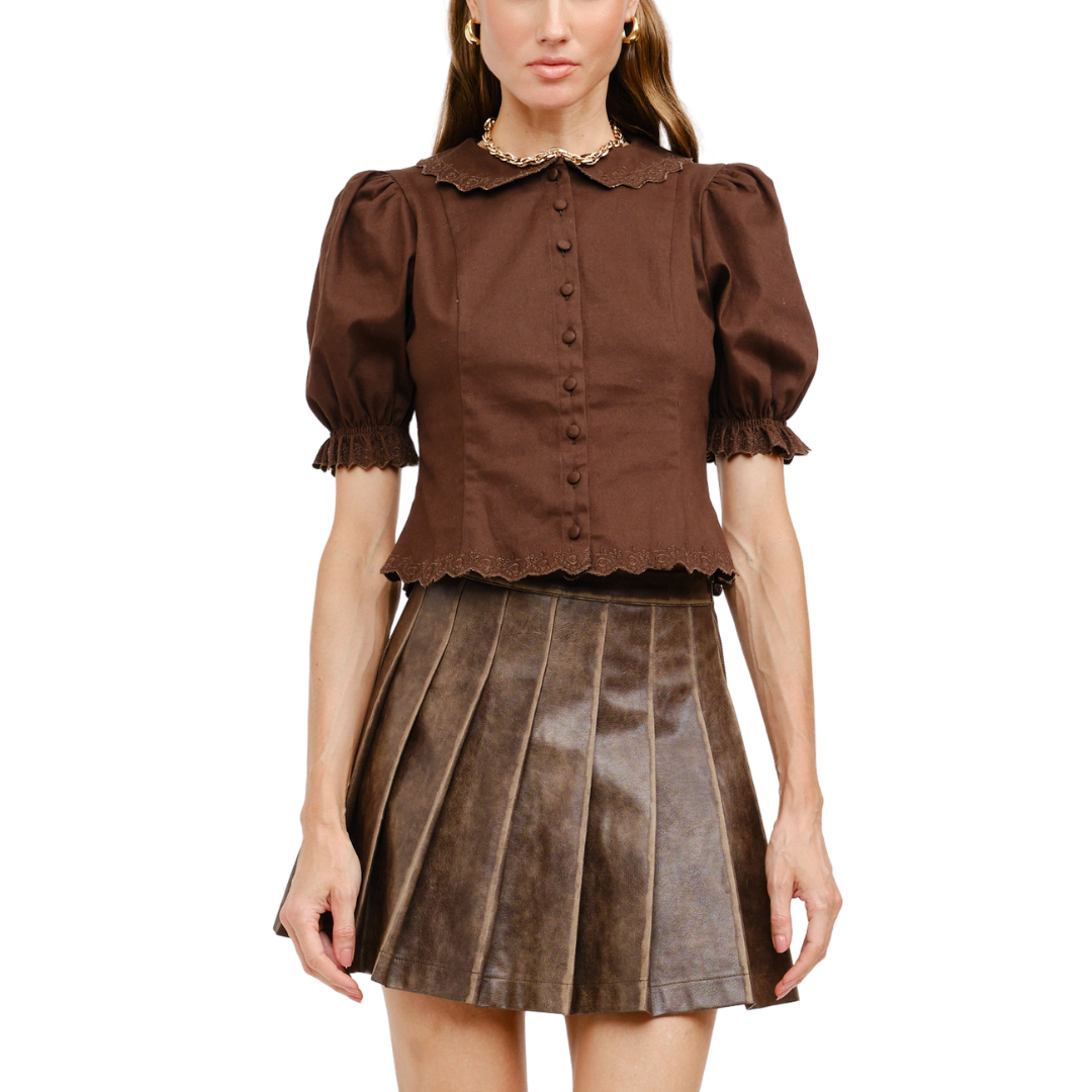 Puff sleeve brown top