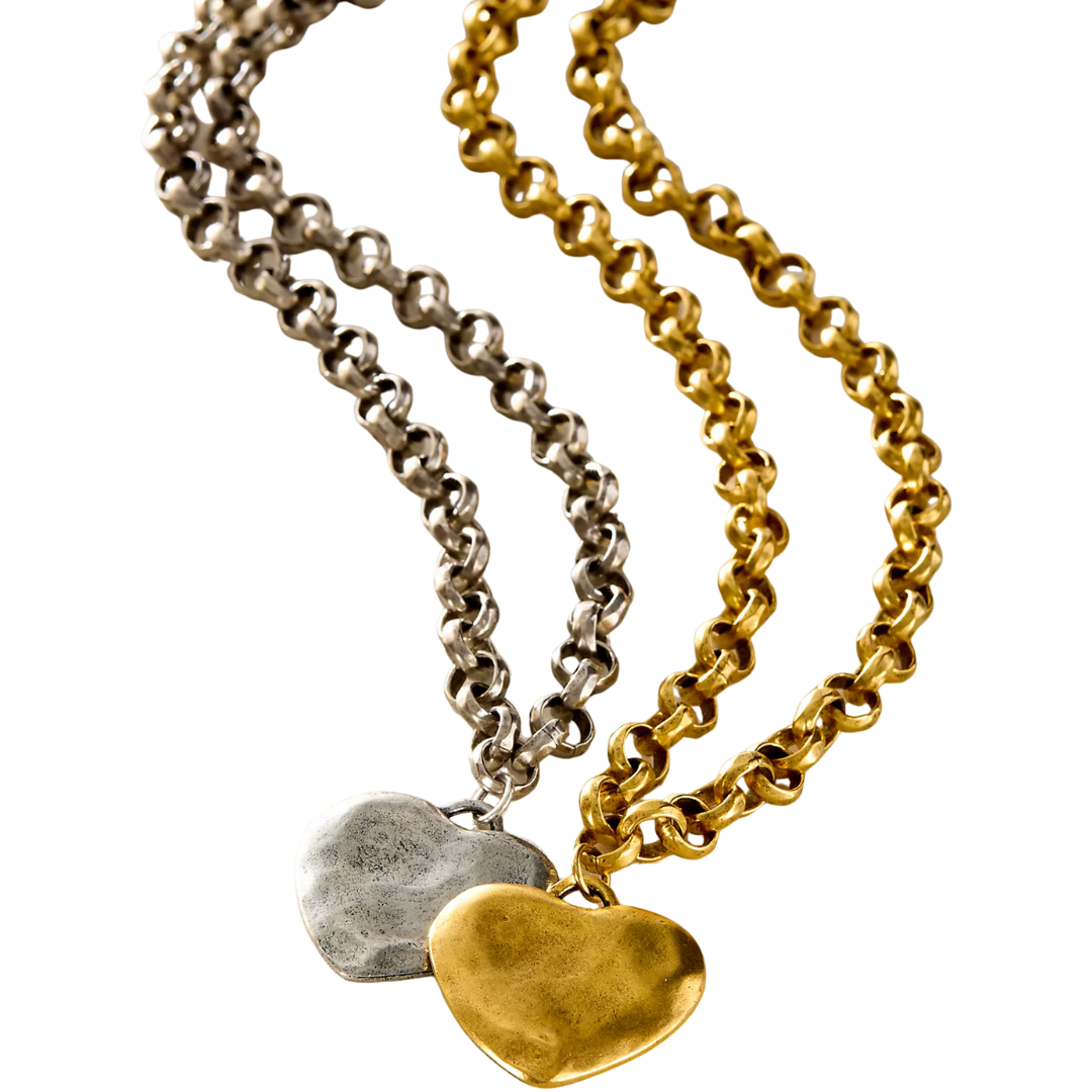 Add a unique touch to your look with this cute pendant necklace, featuring a rollo chain adorned with a hammered heart pendant for a sweet touch.
