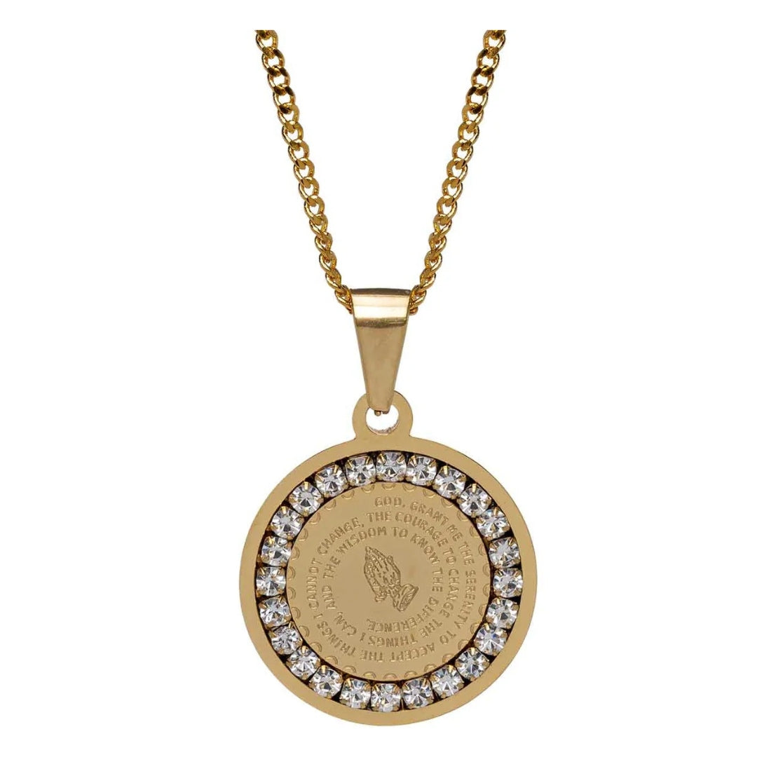 Wake, pray, and slay with our signature Prayer Warrior Necklace. 18k gold plated prayer pendant with cubic zirconia accents. Gold plated over stainless steel, water / tarnish resistant, 16'' and 28” length.
