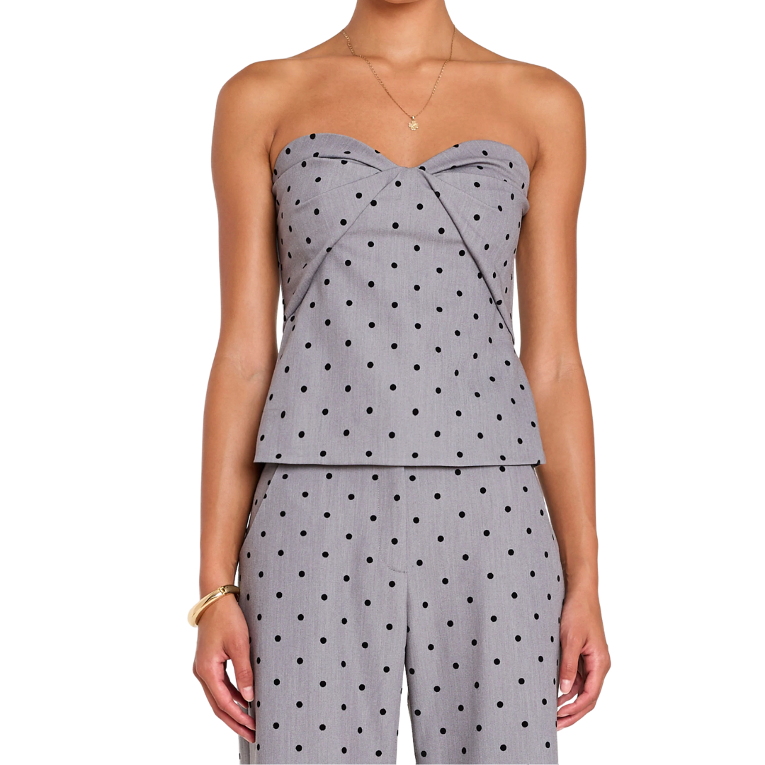 Feel your best in the Soho Top. With a sweetheart neckline and strapless cut, this top is all about flirty sophistication. The polka dot print adds extra charm—style it with the Saddler Pants for a coordinated look.