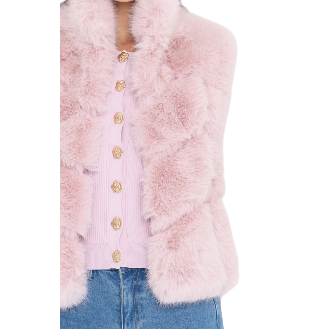 Warm and inviting, this faux fur vest features a polished high neckline and a distinctive chevron pattern. With its sleek cropped silhouette, this is a versatile layering piece you'll reach for time and again.