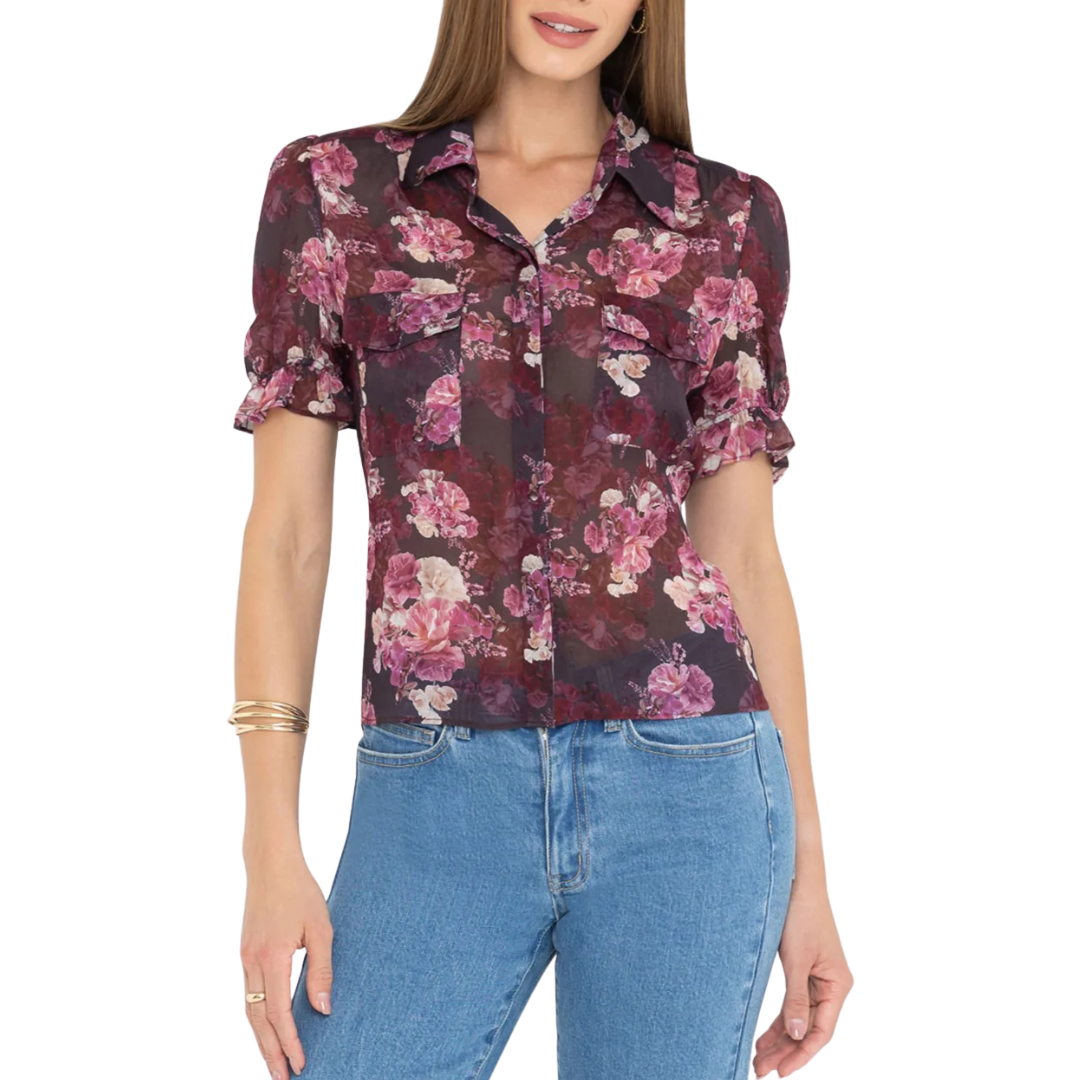 MINA FLORAL GEORGETTE SHIRT BURGUNDY