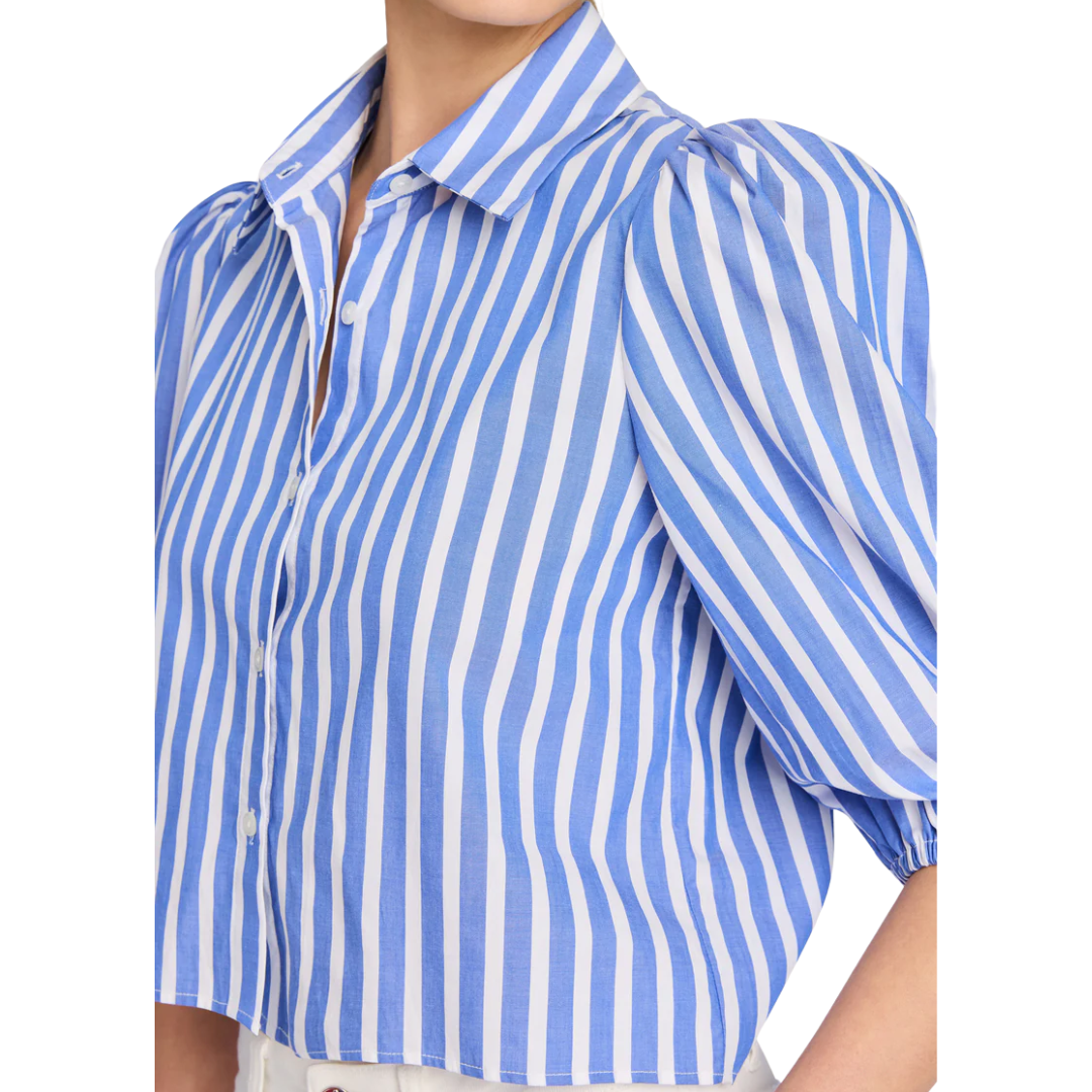 Chic stripes and airy balloon sleeves define this cropped poplin button-down, making it the perfect piece for warm-weather dressing. Style it with white pants for a polished summer ensemble.