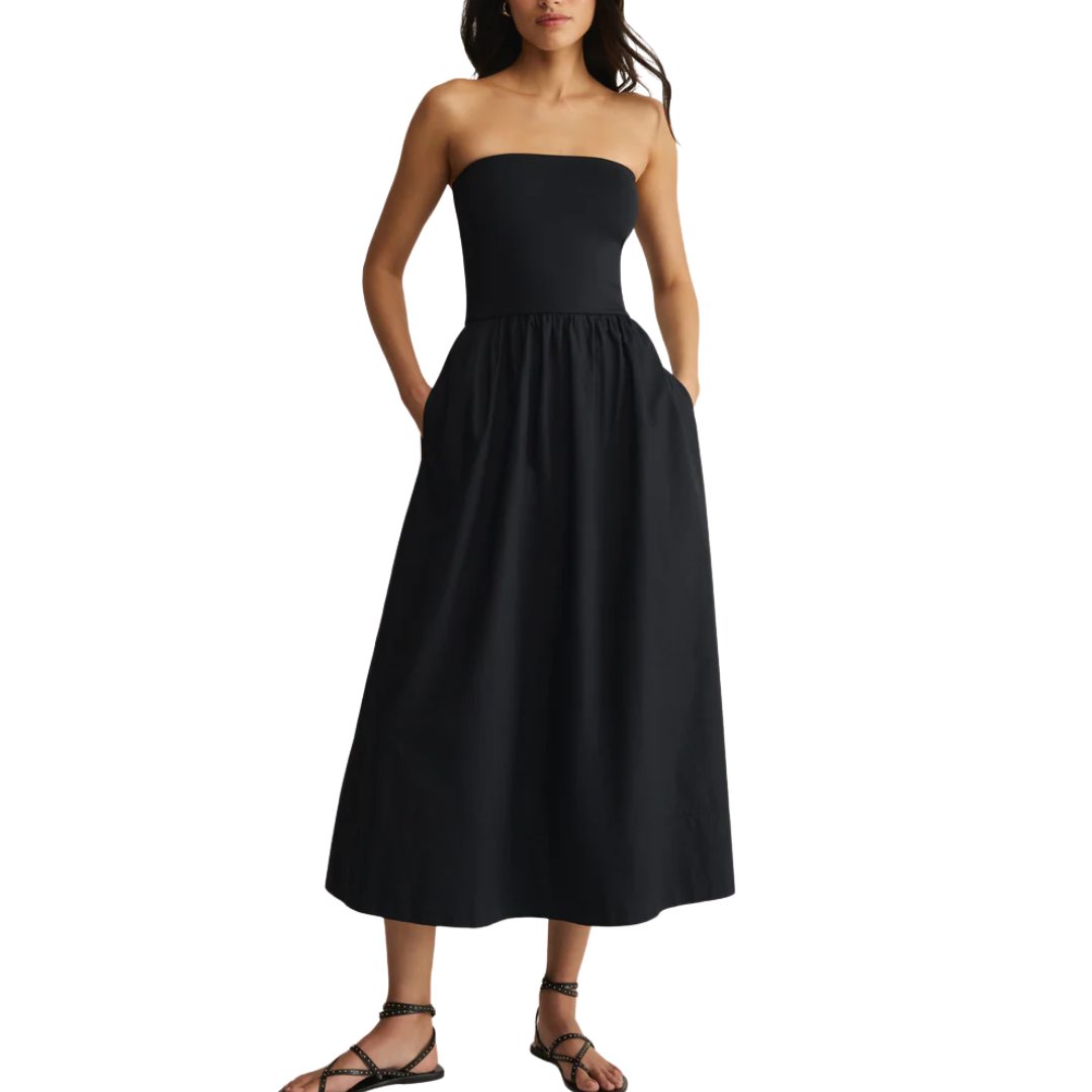 This strapless midi dress features a fitted bodice crafted in our Luxe So Smooth fabric, paired with a lightweight poplin skirt for easy movement. Designed to feel effortless from day into evening, it's a warm-weather go-to.