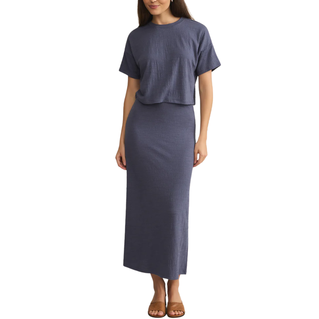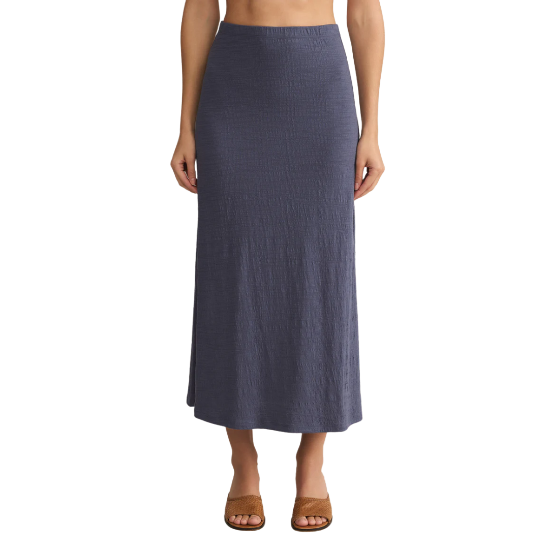 Relaxed and versatile, this mid-rise maxi skirt features an elastic waistband and textured slub knit fabric for a laid-back vibe. Midweight and easy to style, it’s the ultimate piece for effortless layering.