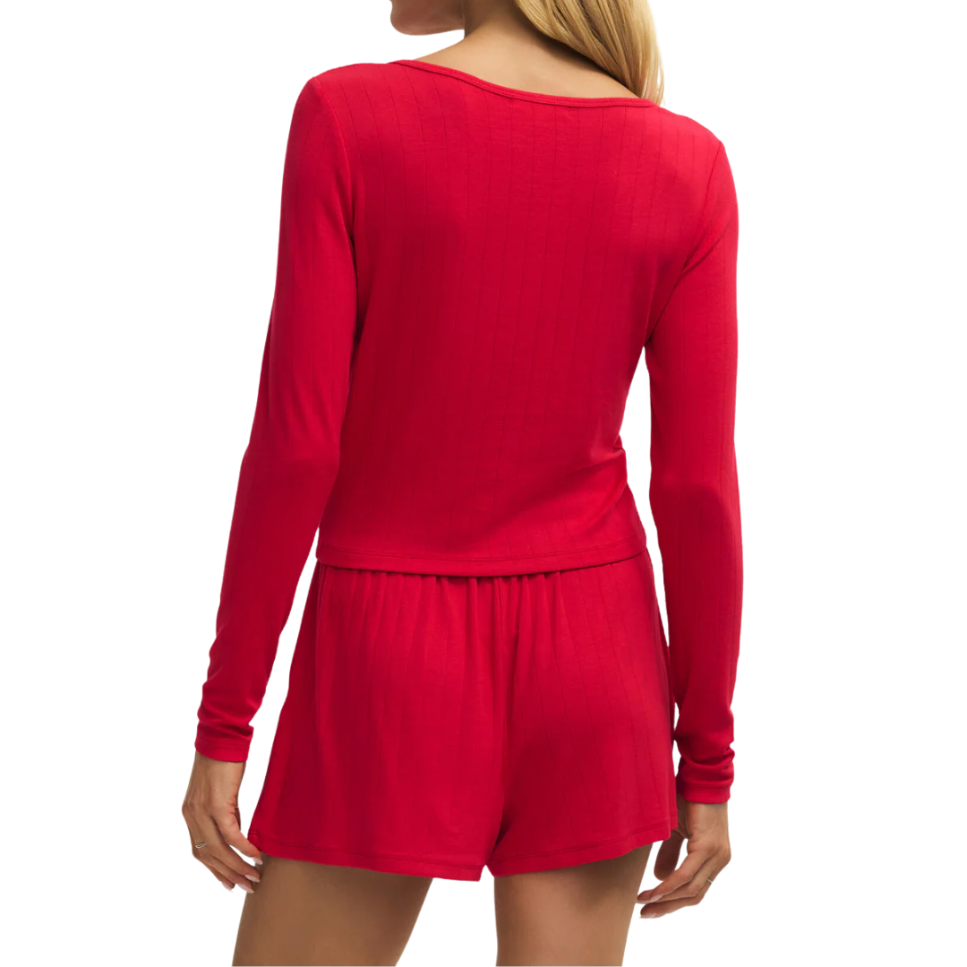 Soft, lightweight, and irresistibly comfy, these ribbed lounge shorts are made for cozy nights and laid-back mornings. The elastic waistband gives an easy, relaxed fit while the bold red hue adds a fun pop to your lounge set.• Soft rib knit