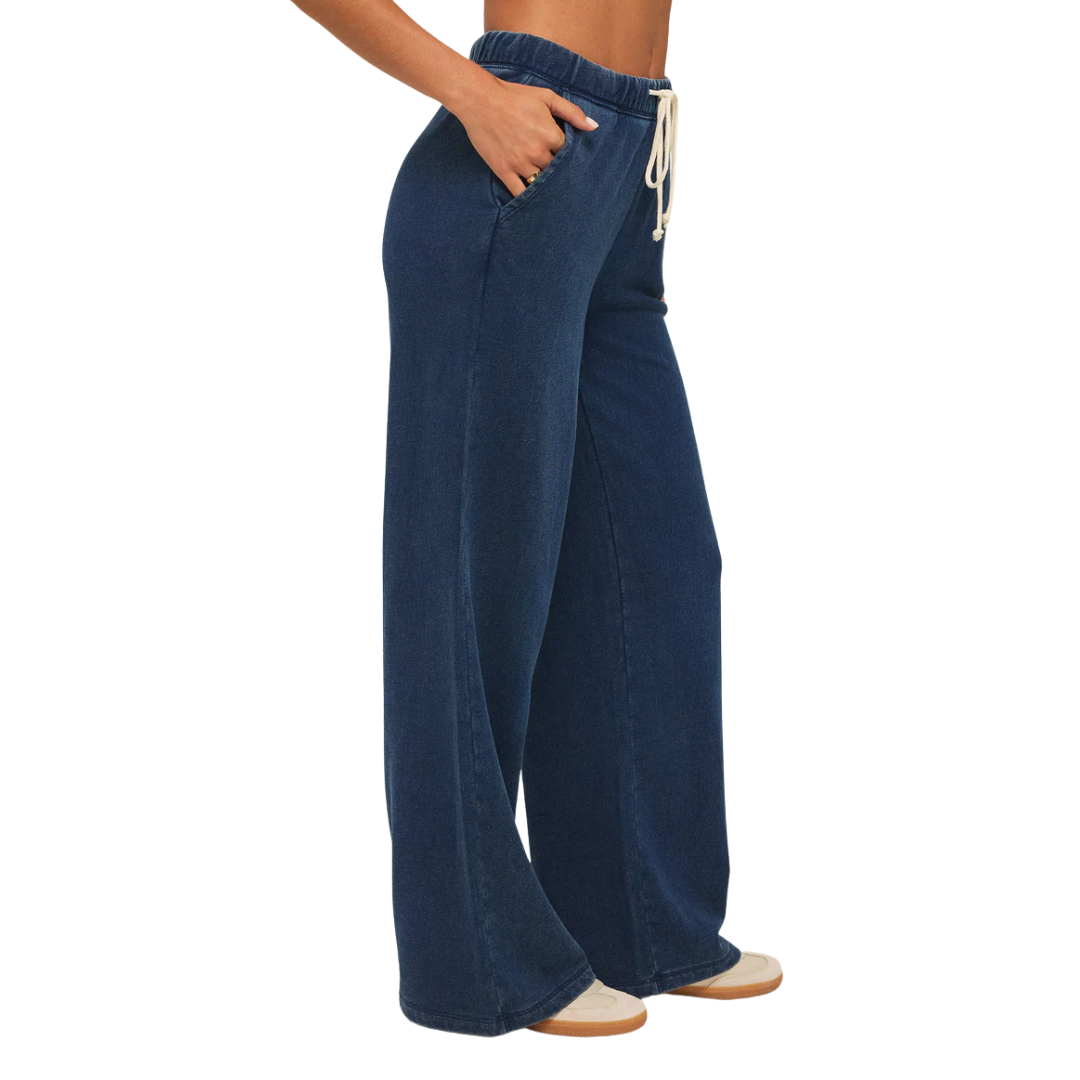 Say hello to your new go-to full-length pant, featuring sleek trouser pockets and a fully functional drawcord waistband for that perfect fit. Made from lightweight knit denim, these pants combine style and comfort effortlessly for any occasion.