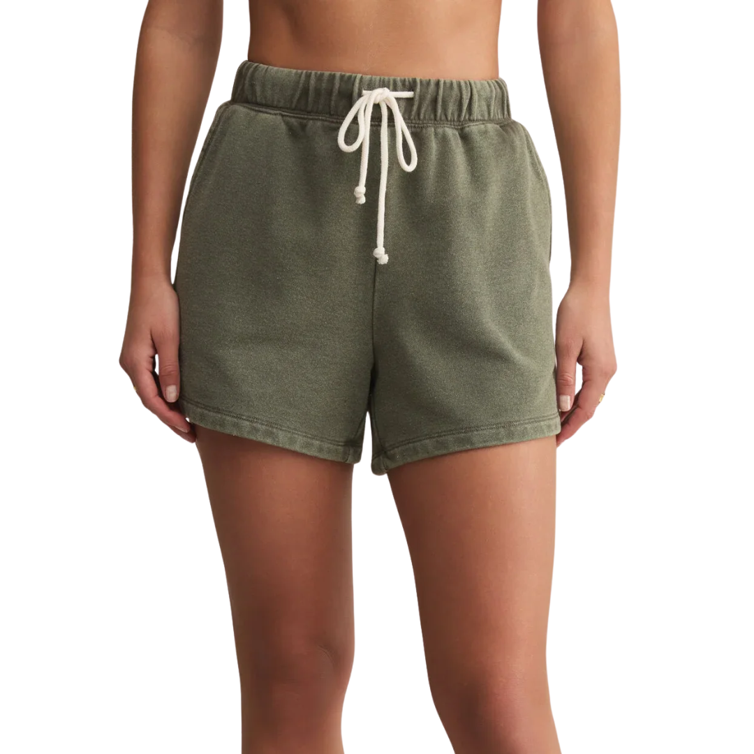 Kicked-back and cool, this knit French terry short has a lived-in look and feel. The contrast drawcord at the high-rise waist gives a little sporty twist, while the slash pockets keep it functional.