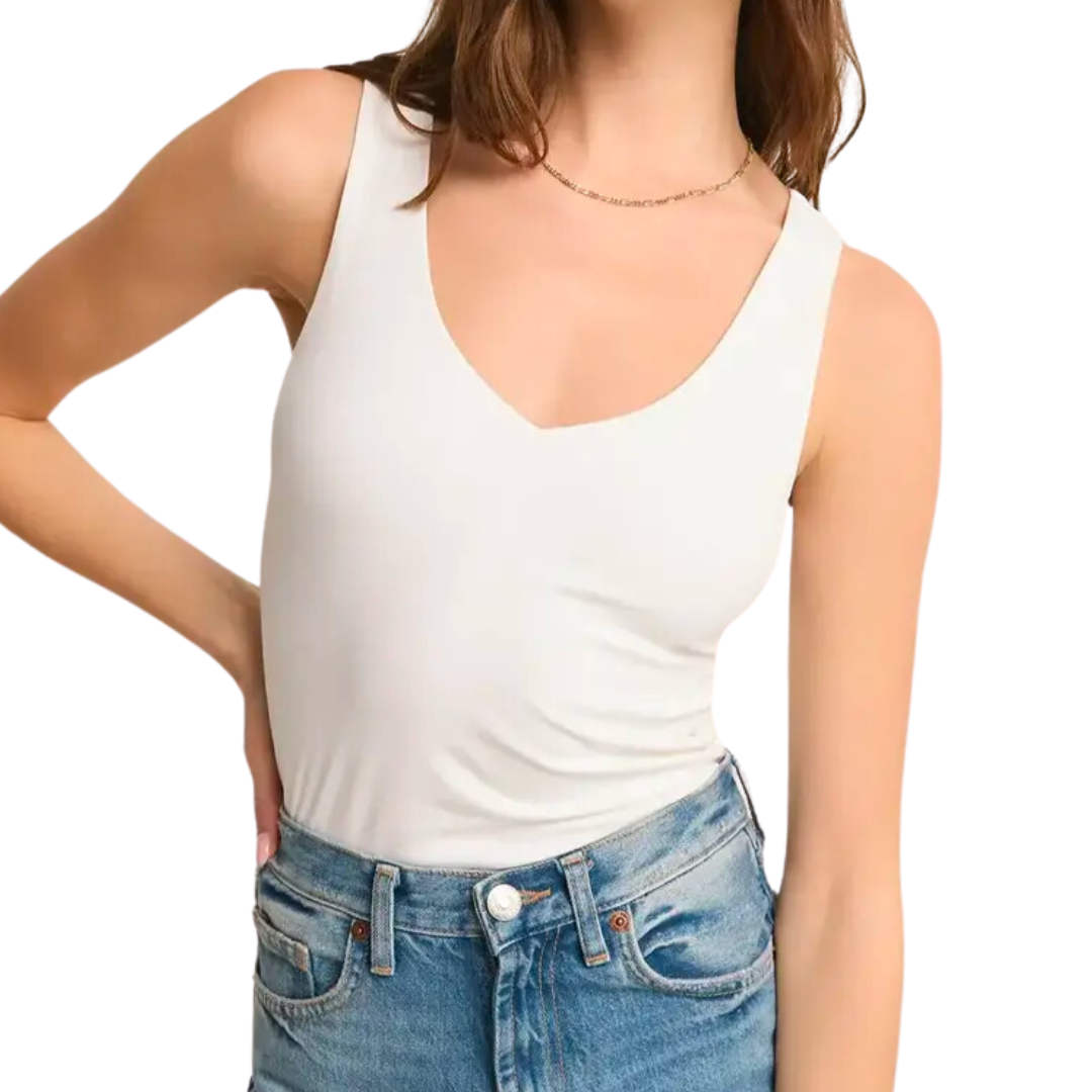 Sleek and structured, meet the Avala V-Neck So Smooth Top. This v-neck is double layered which gives it a heavier feel with a more sophisticated, clean finish. It is fitted, but has a nice stretch for all-day comfort.