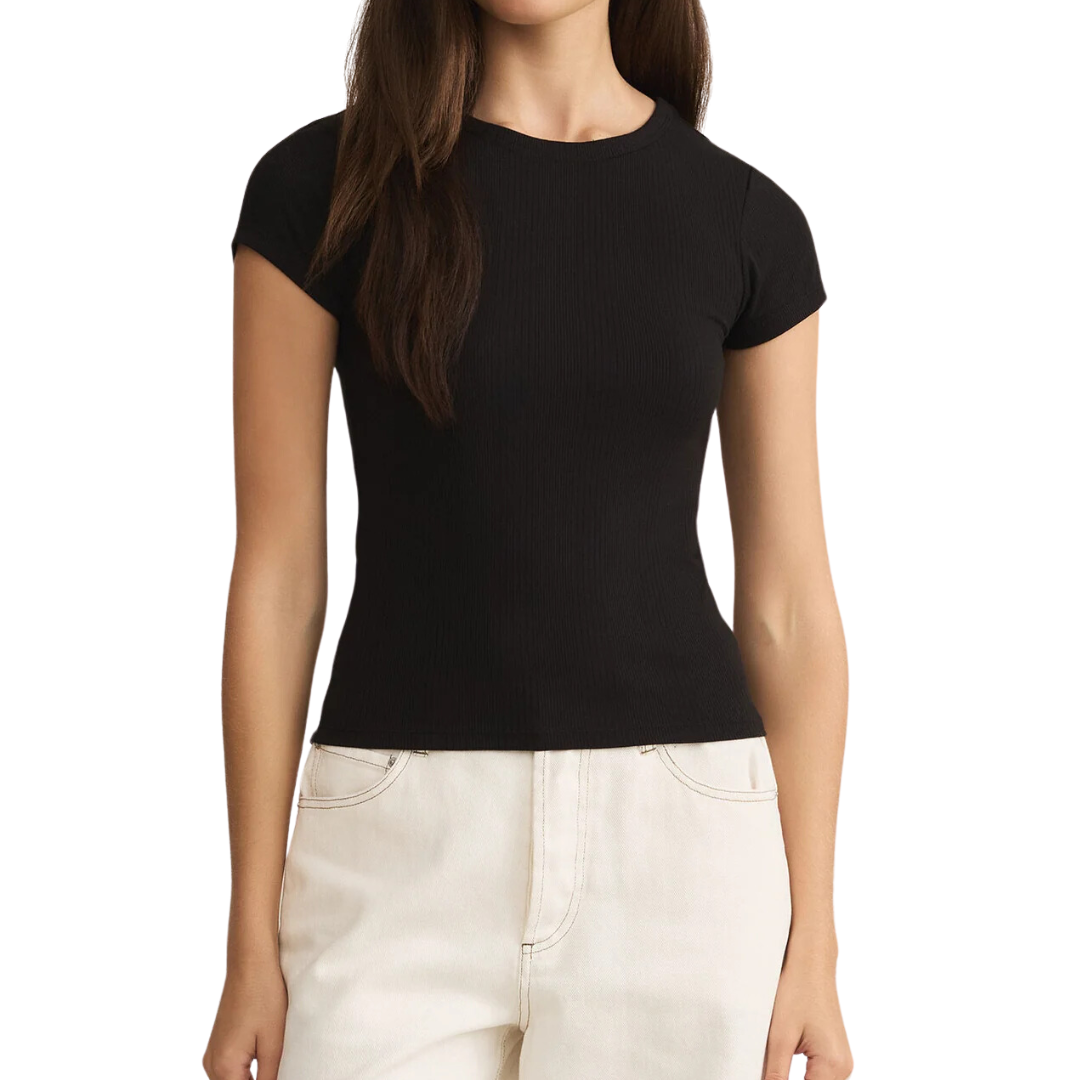 This classic ribbed tee is an essential for any wardrobe, with a comfy crew neckline and a flattering, somewhat fitted design that adds just the right touch of polish. Perfect for layering or wearing solo, this versatile piece can be tucked for a sleek look or worn loose for laid-back days, all season long.