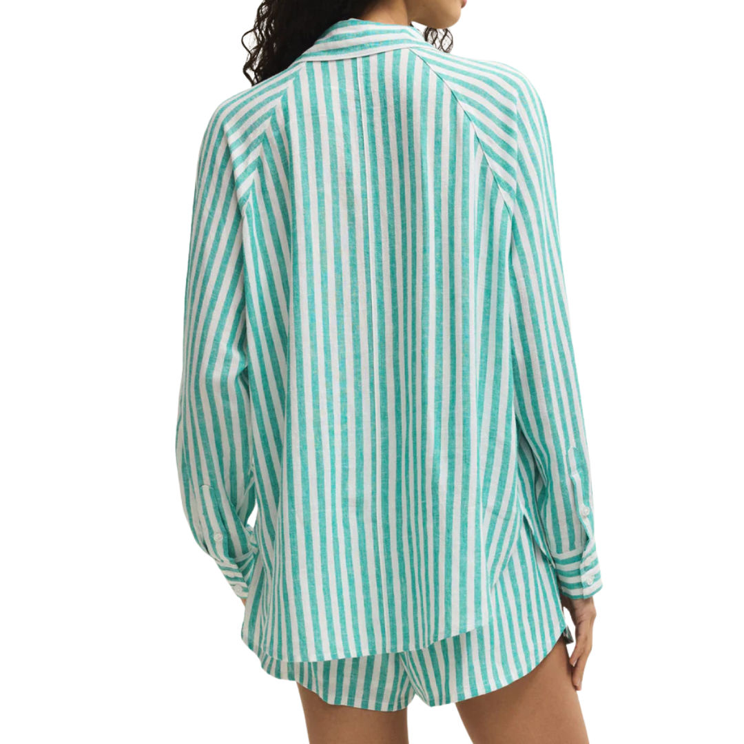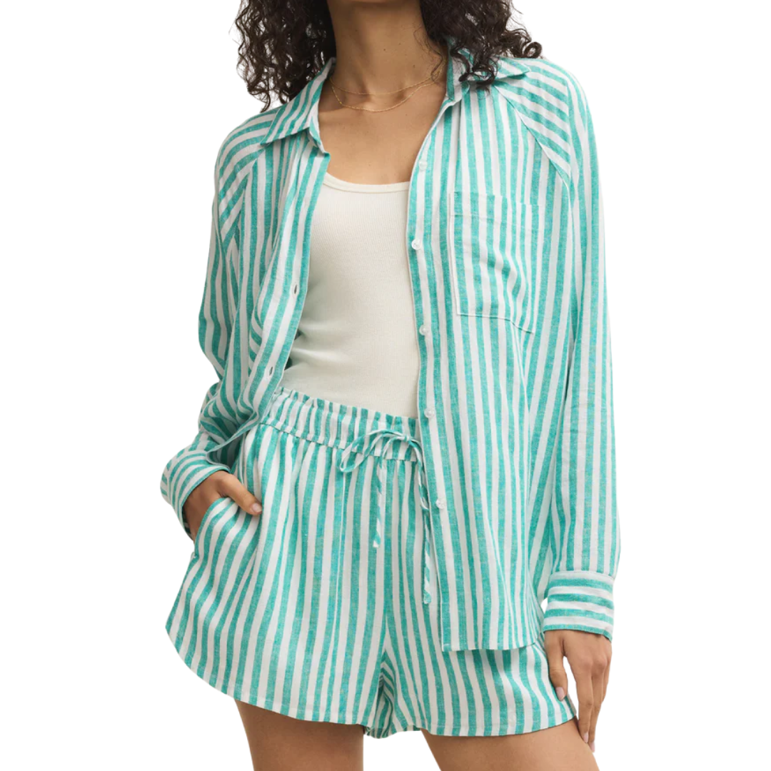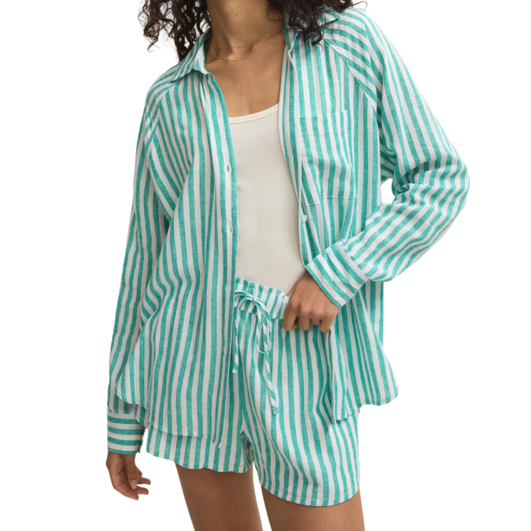 You'll love the easy, breezy comfort of this classic stripe button-up. Featuring that soft, drapey feel you look for, you can wear it alone or as a lightweight layer for an effortless look, no matter where your day takes you.