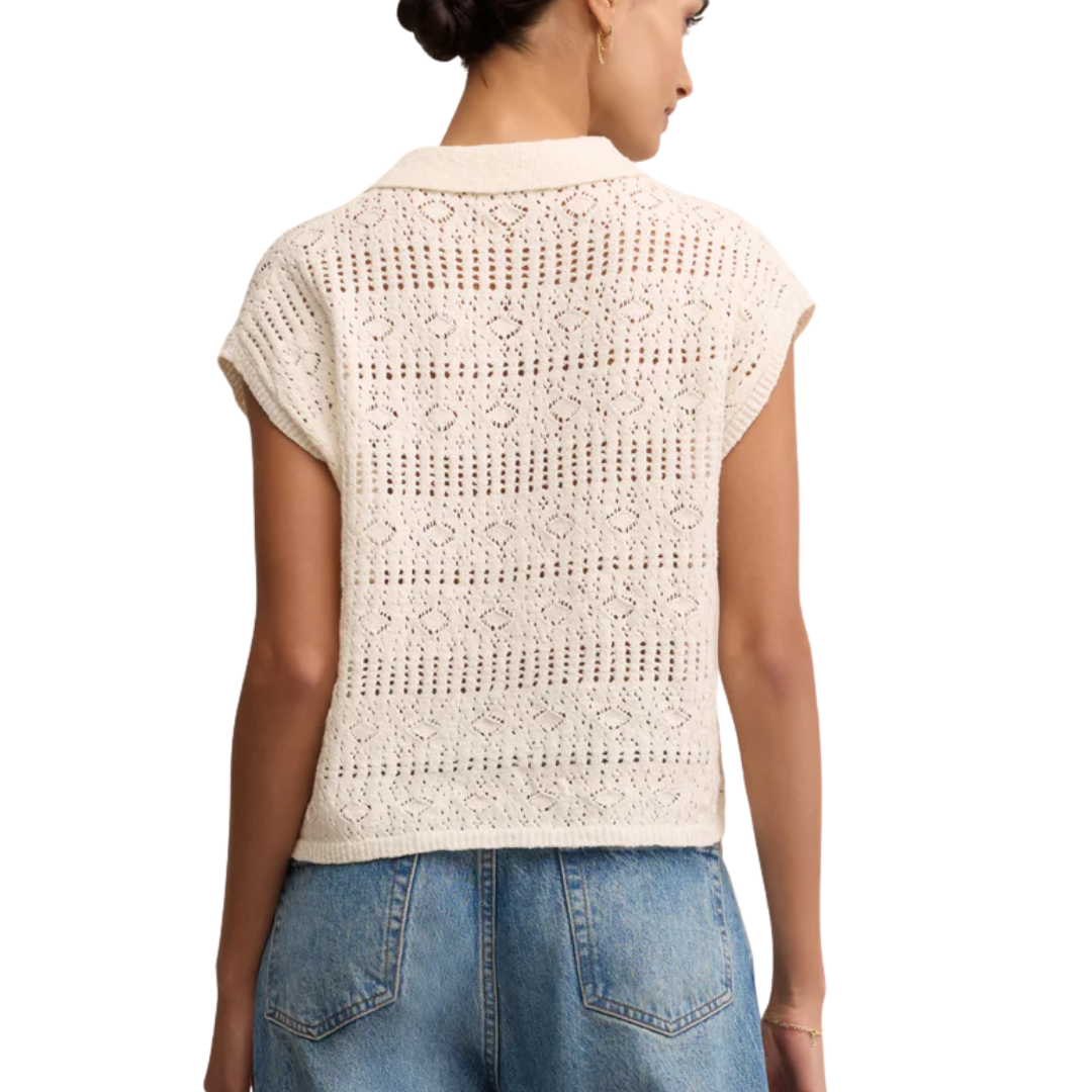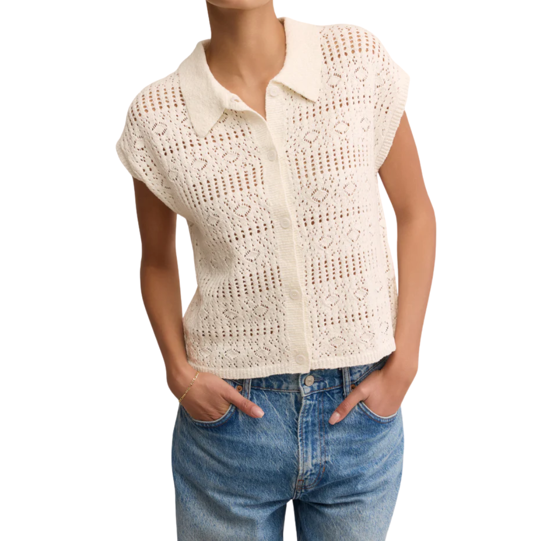 Crafted from twisted cotton slub yarns with a structured, open-knit feel, this sleeveless top features a collared neckline and button-up design. Engineered with a crochet-inspired pattern and drop shoulder, it’s textural, breathable, and designed with a modern, structured silhouette.
